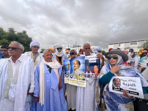 وطالب المحتجون الرئيس محمد ولد الشيخ الغزواني بإنهاء معناة الرئيس السابق والسماح له بالسفر لتلقي العلاج