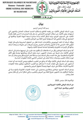ودعا السلك الوطني للأطباء الإعلاميين والمدونين إلى اعتماد القنوات القانونية والمؤسسية في معالجة الشكاوى بدل التشهير، تعزيزا للثقة بين المريض والطبيب، والتي تشكل أساس أي نظام صحي فعال وعادل.