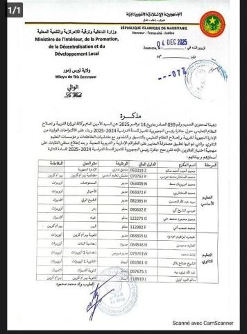 أصدرت الإدارة الجهوية للتربية وإصلاح النظام التعليمي بولاية تيرس زمور، صباح اليوم لا ئحة تضم أسماء المكرمين الحاصلين على جائزة رئيس الجمهورية للتميز وتضم الائحة لفيف من المعلمين والأساتذة وأعضاء من الإدارة وهذه قائمة المكرمين على المستويين الأساسي والثانوي