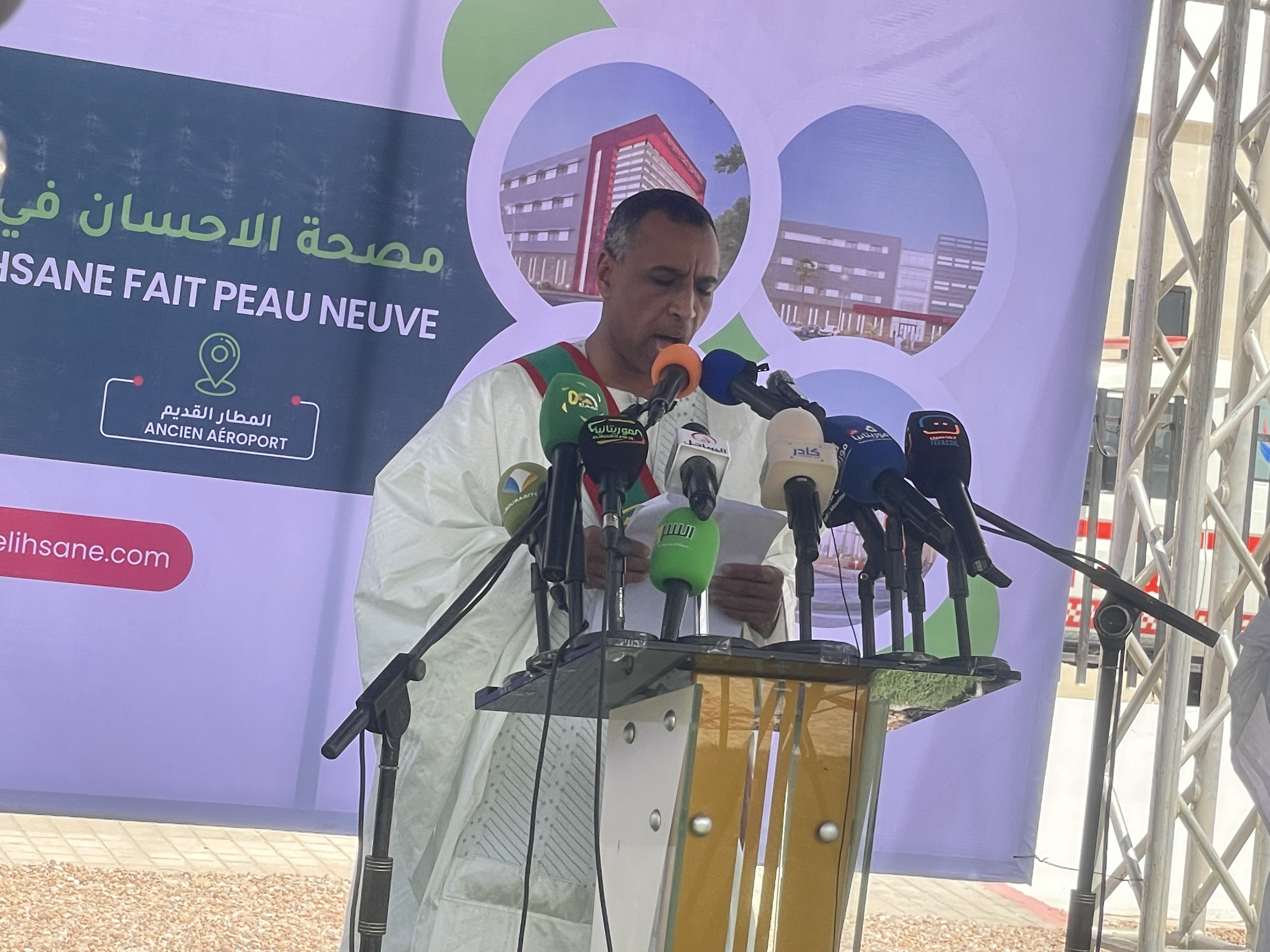 أشرف معالي وزير الصحة، السيد اتيام تيجان، رفقة معالي وزير تمكين الشباب والتشغيل والرياضة والخدمة المدنية، السيد محمد عبد الله ولد لولي، اليوم السبت بولاية نواكشوط الشمالية على انطلاق أنشطة مصحة الإحسان.