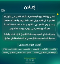 قالت وزارة التربية وإصلاح النظام التعليمي إنه لن يقبل تسجيل أي تلميذ بعد يوم 15 أكتوبر إلا إذا قدم وثيقة رسمية تثبت وجود عائق صحي أو ظرف استثنائي موثق.