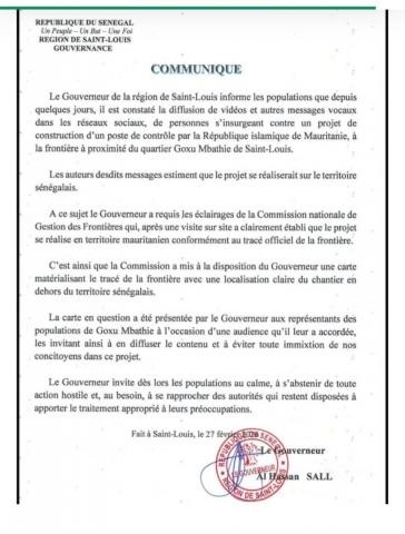 احد ولاة السنغال والي سينلوي هناك ارض فيها. الأشغال هي تابعة لموريتانيا