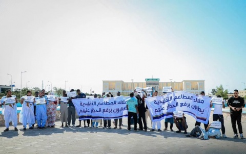 اثر قرار الحكومة المتعلق بتوقيت عمل المطاعم وهو. منتصف. الليل يحتجون علي القرار