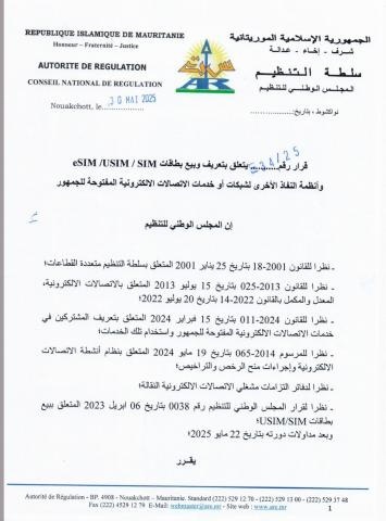 قال المتحدث باسم مستثمرين في سوق الاتصالات السيد الولي ولد احمد إنهم يطالبون بإقالة رئيس سلطة تنظيم الاتصالات ومعاونيه بسبب فشلهم الذريع في تنفيذ القرارات الصادرة عن السلطة المتعلقة بضبط سوق شرائح الاتصال وخاصة القرار رقم 2025/0034 (المرفق)،معربين عن قلقهم ازاء ما تمر به السوق اليوم من فوضى باتت خارج السيطرةتقابلها السلطة بالتجاهل والتواطؤ حتى..