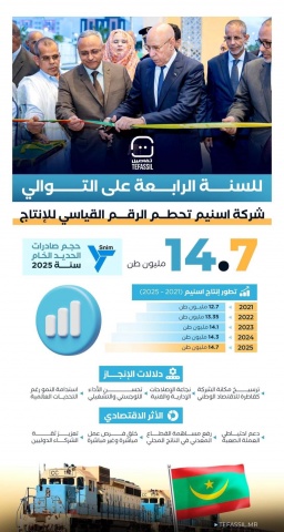 ويُظهر تطور إنتاج الشركة خلال السنوات الأخيرة نمواً مطرداً، إذ ارتفع من 12.7 مليون طن سنة 2021 إلى 13.35 مليون طن في 2022، ثم 14,1 مليون طن في 2023، قبل أن يصل إلى 14.3 مليون طن في 2024، وصولاً إلى المستوى القياسي المسجل سنة 2025.