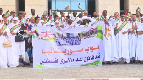 نظم أعضاء الجمعية الوطنية (البرلمان الموريتاني) أمس الأربعاء، وقفة احتجاجية في نواكشوط، للتنديد بالقانون الذي أقره الكنيست الإسرائيلي والقاضي بإعدام الأسرى الفلسطيـ.ـنيين.